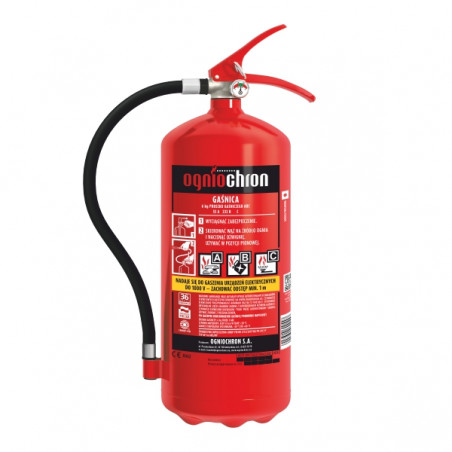 Masa gaśnicy proszkowej to 9,3 kg, a więc jest to niewiele więcej niż masa samego środka gaśniczego (6 kg proszku ABC). Jest to profesjonalny sprzęt, jednak może być również używany przez osoby bez specjalnego przeszkolenia. Gaśnica proszkowa 6 kg jest prosta i intuicyjna w obsłudze, co jest szczególnie ważne w przypadku nagłego wystąpienia pożaru. Cechuje się największą możliwą skutecznością gaśniczą dla tego typu gaśnic.